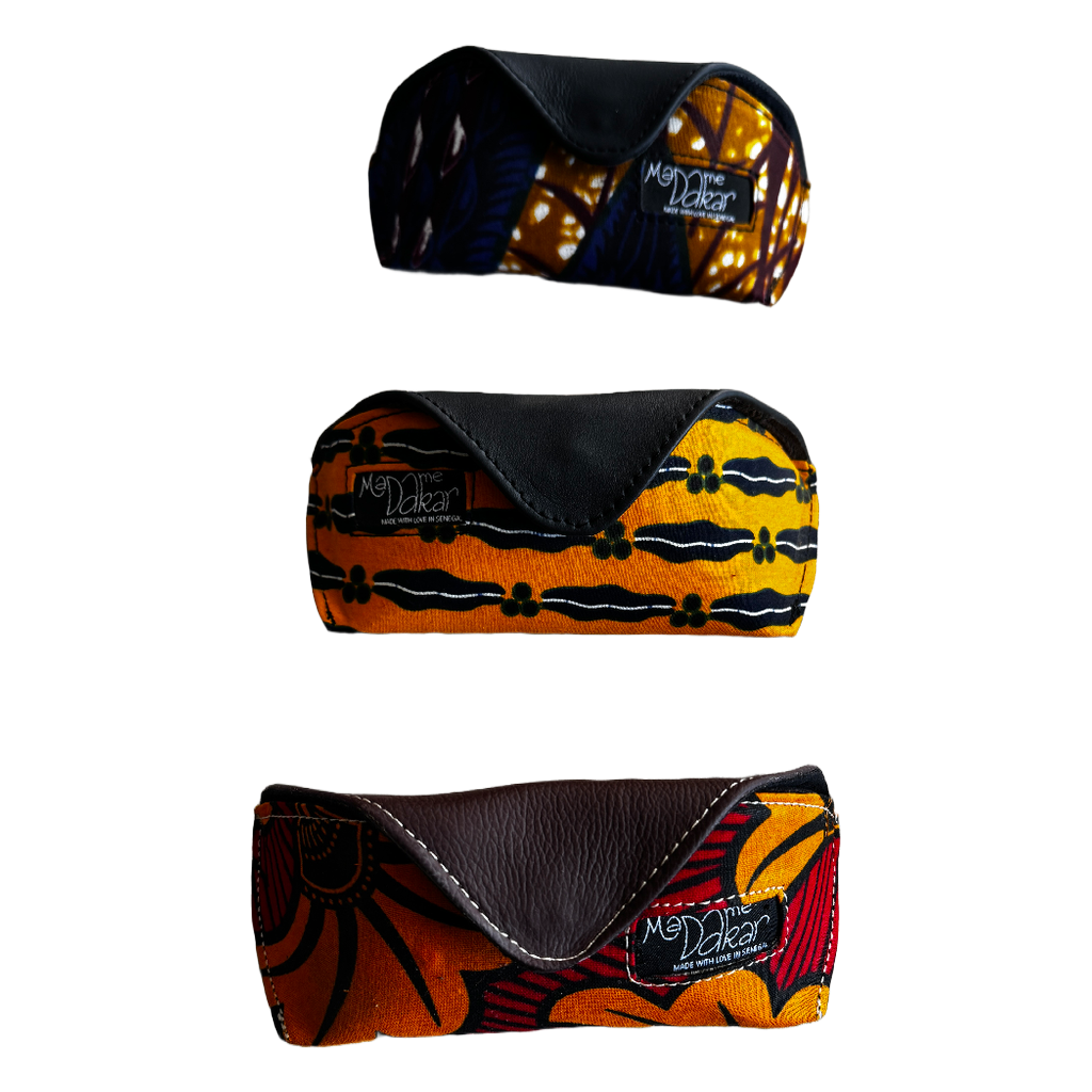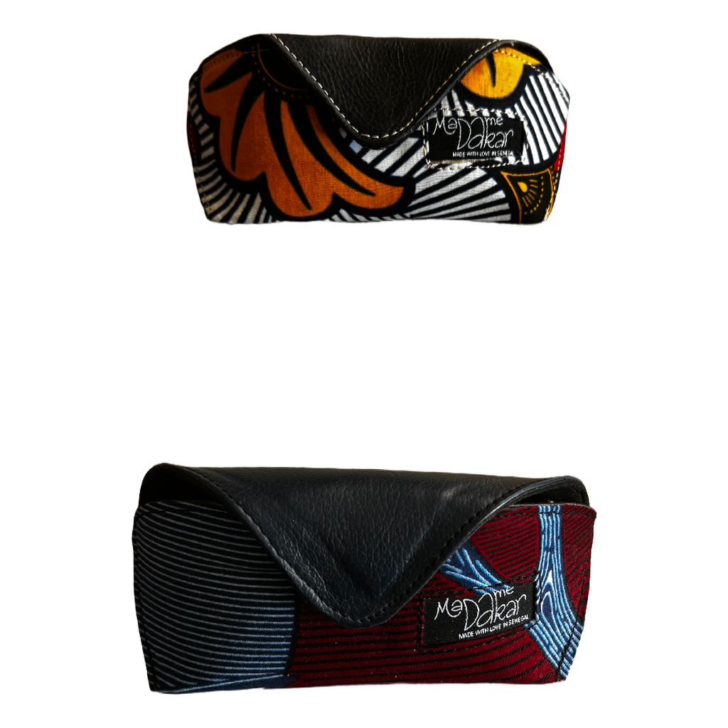 L’Étui lunette en cuir et pagne protègera vos paires de lunettes de soleil ou de vue.