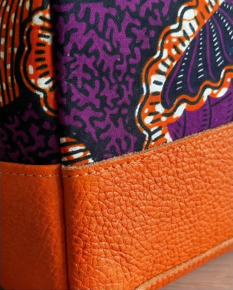 Alliez tradition et modernité avec cette trousse unique, confectionnée à partir de cuir recyclé de haute qualité et de tissu wax.